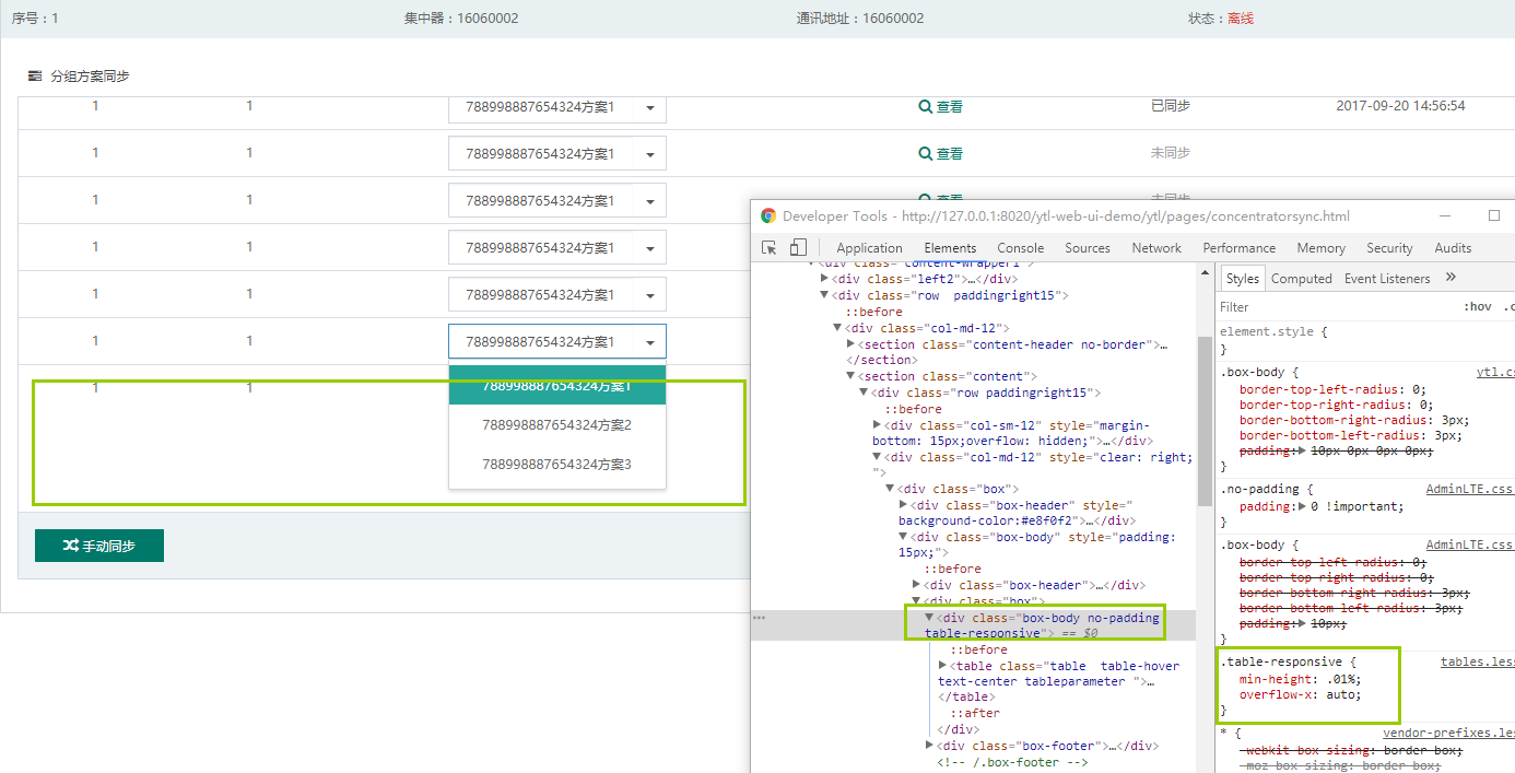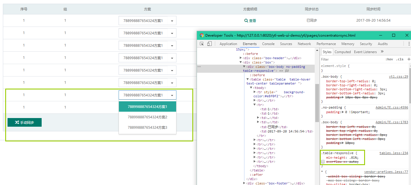 当父元素设置为overflow:auto时,后代position:absolute的元素依然会把父元素撑开。如下图,下拉框的定位是absolute。