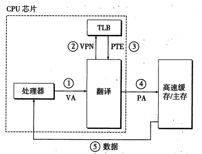 TLB是一个小的、虚拟寻址的缓存,其中每一行都保存一个PTE块,高度相连。主要是提供虚拟地址到物理地址的翻译速度。大致范围示意图如下: