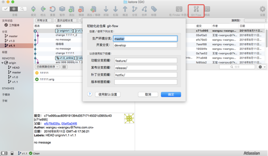 - 如果有1.0版本上线以后,发现了一下BUG,则需要通过Tag1.0创建一个分支hotfix-issue001进行修复,知道提交审核通过,把分支合并到Master分支和develop分支,并给Master添加标签(V实际版本号)