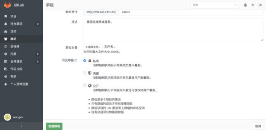 1.当有新项目需要进行代码提交时,首先通过管理员创建一个项目的分组