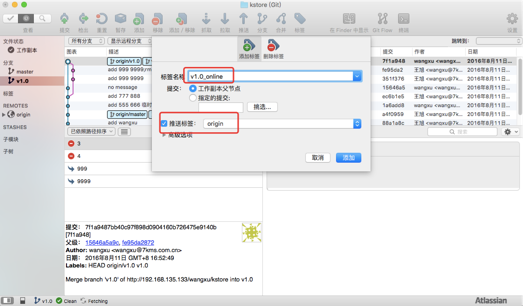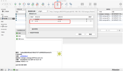 点击推送,勾选需要推送到的分支,即可推送到服务器中。