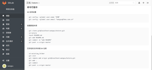 [root@localhost ~]# mkdir kstore [root@localhost ~]# cd kstore/ [root@localhost kstore]# git init Initialized empty Git repository in /root/kstore/.git/ [root@localhost kstore]# git config --global user.name "王旭" [root@localhost kstore]# git config --global user.email wangxu@7kms.com.cn [root@localhost kstore]# git clone http://wangxu@localhost/wangxu/kstore.git Cloning into 'kstore'... Password: warning: You appear to have cloned an empty repository. Checking connectivity... done. [root@localhost kstore]# echo $? 0 [root@localhost kstore]# ls kstore [root@localhost kstore]# [root@localhost kstore]# cd kstore [root@localhost kstore]# touch README.md [root@localhost kstore]# git add README.md git commit -m "add README" [root@localhost kstore]# git commit -m "add README" [master (root-commit) 54458ce] add README 1 file changed, 0 insertions(+), 0 deletions(-) create mode 100644 README.md [root@localhost kstore]# git push -u origin master Password: Counting objects: 3, done. Writing objects: 100% (3/3), 218 bytes | 0 bytes/s, done. Total 3 (delta 0), reused 0 (delta 0) To http://localhost/wangxu/kstore.git * [new branch] master -> master Branch master set up to track remote branch master from origin. [root@localhost kstore]# git branch -a * master remotes/origin/master [root@localhost kstore]#