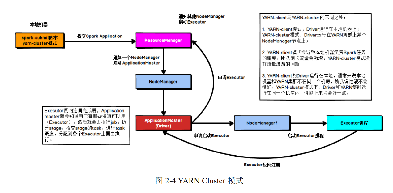 在 YARN Cluster 模式下,任务提交后会和 ResourceManager 通讯申请启动