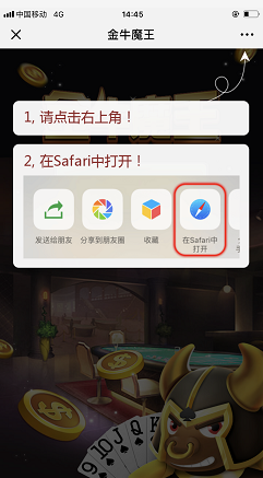 功能实现后, 苹果用户即可在微信内直接下载app也可以跳转浏览器下载,安卓用户则自动打开手机浏览器下载app, 如果不含下载文件,则直接从微信内跳转到外部浏览器访问指定页面 。下面是含app下载文件的实现效果: