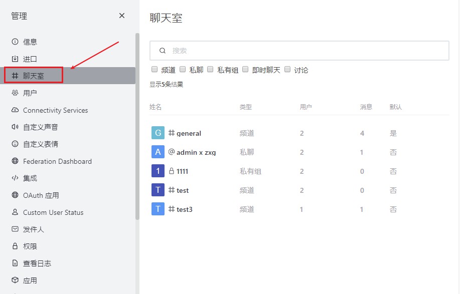 二、简单管理rocket.chat