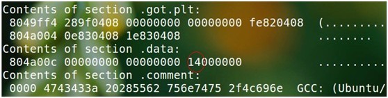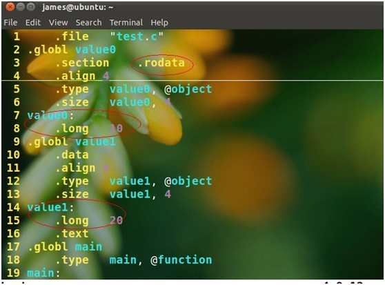 其中value0由于被const修饰所以放在了.rodata段也就是所谓的常量区,而value1是一个普通的全局变量所以放在了.data段也就是所谓的静态数据区。分析编译生成的ELF格式可执行程序如下:
