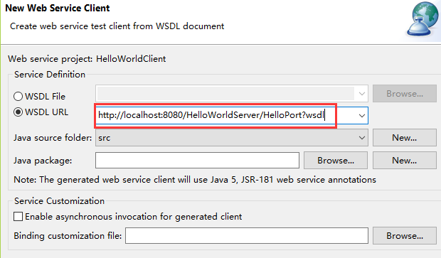 填写wsdl地址(参考:myeclipse构建webservice项目)