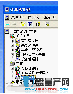 先将盘符里的内容移开备份,在桌面上“我的电脑”图标点右键,选“管理”打开的“计算机管理”窗口中选择“磁盘管理”。