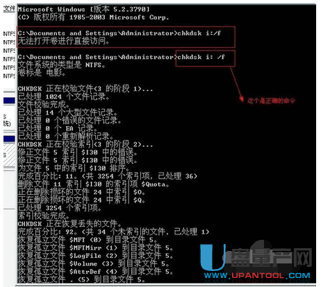 假设盘符为G:,那么输入命令 chkdsk g: /f后回车:并在提示“要继续吗”之后,输入y后回车,耐性等待检验完成后,即可继续使用硬盘。