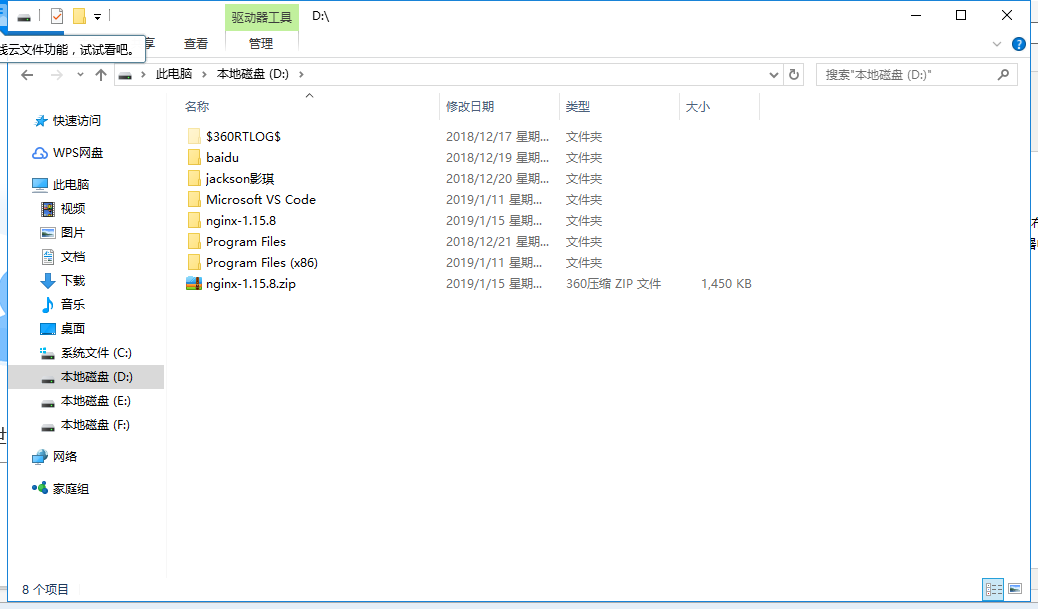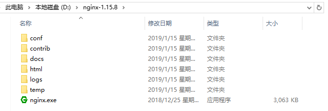 第四步:在浏览器地址栏输入:127.0.0.1,会看nginx欢迎界面;如果发现进程中并没有,那么说明启动失败,你可以到你的D:\nginx-1.15.8目录输入ngnix查看,