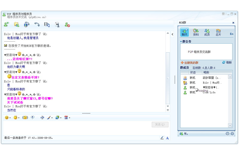 MSN官方群,无需安装插件,群内聊天可以隐藏MSN帐号.