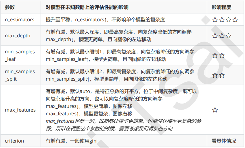 - 1,首先先调即不会增加模型复杂度,又对模型影响最大的参数n_estimators(学习曲线)