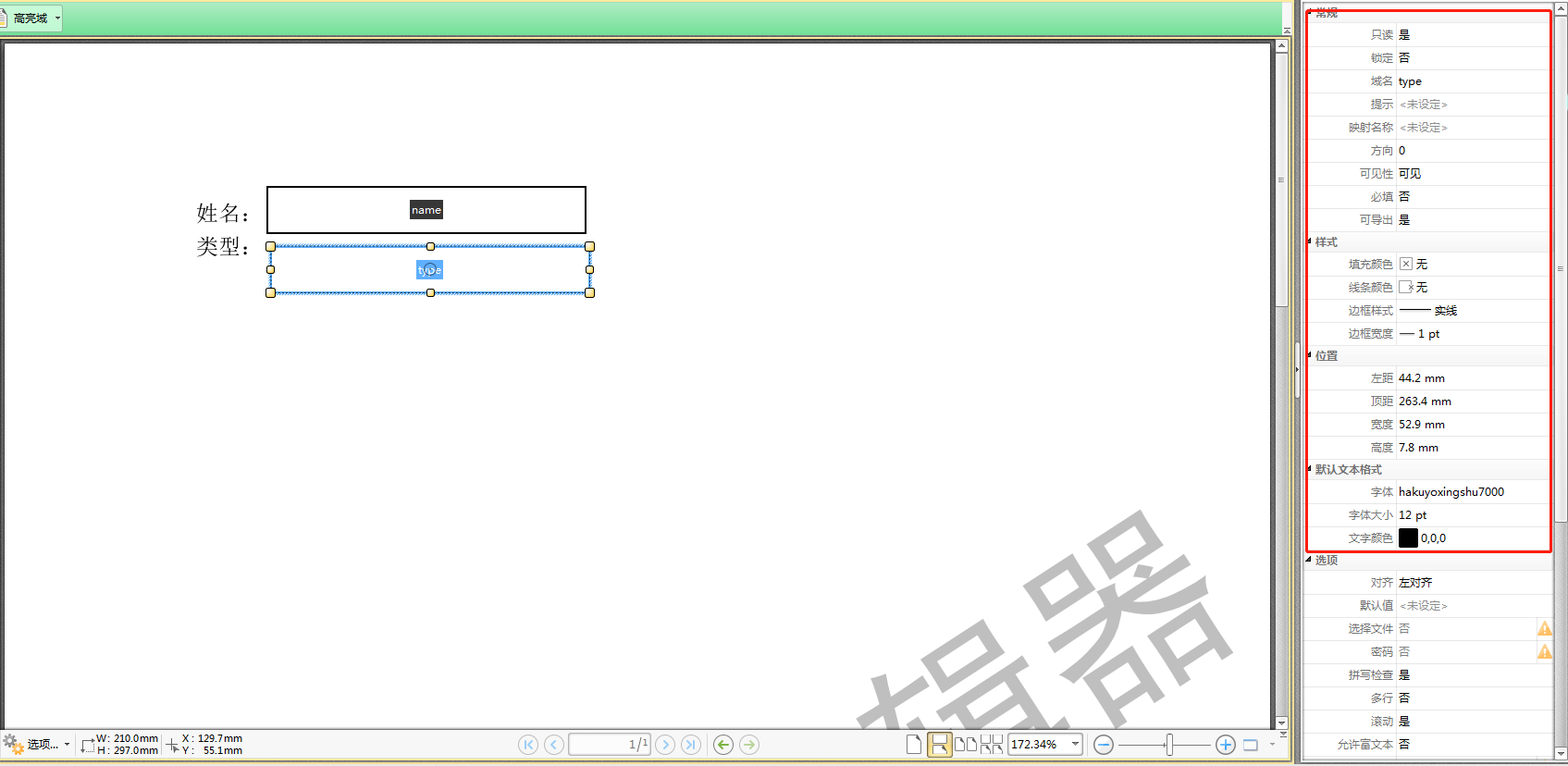 再叨叨一句,说一下pdf表单的设置,对表单右键->属性,设置一下,我用的 迅捷PDF编辑器,那个Adobe的Acrobat挺好用的,就是我没有破解版的,自己找去吧