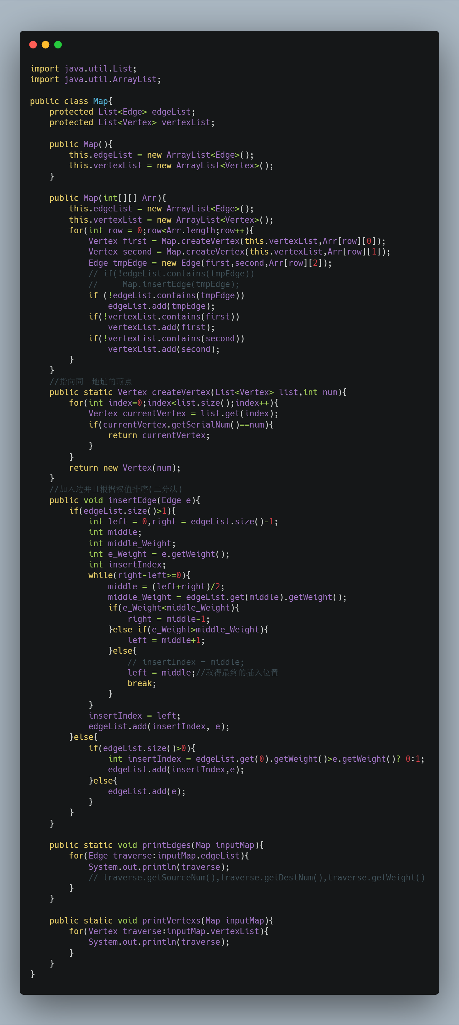 下面给出Java源代码,其中,Vertex为顶点类,Edge为边类,Map为图类,Kruskal继承Map。