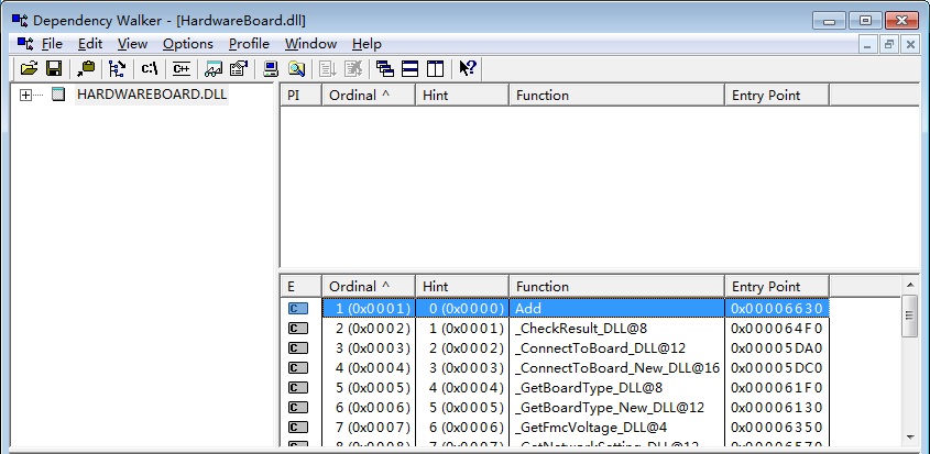 (2) 重新编译 DLL 工程,问题解决。用 Depends 工具查看新的 DLL 导出函数信息如下图所示: