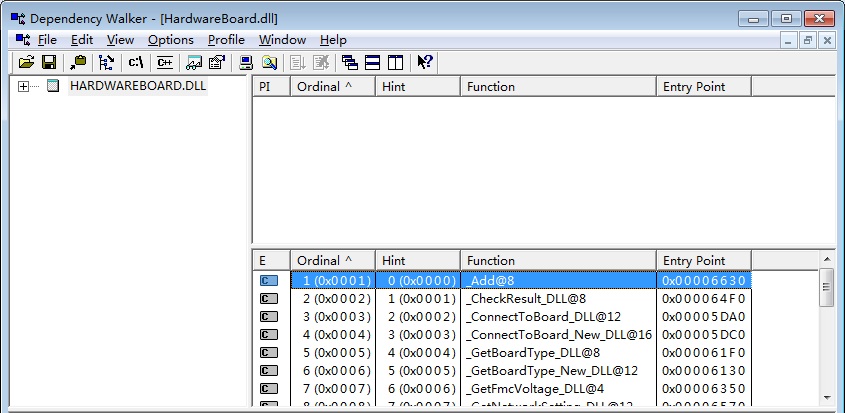 用 Depends 工具(下载地址:http://www.dependencywalker.com/)查看 dll 中的导出函数名称,
