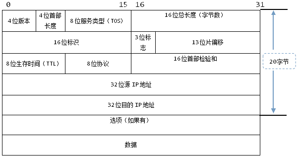 由上面易知,当选项不存在时,IP首部的长度是固定的20字节