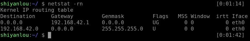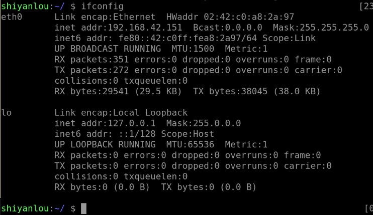 查看本机网络接口信息(包含物理地址、IP地址、子网掩码、MTU等信息): $ ifconfig