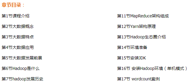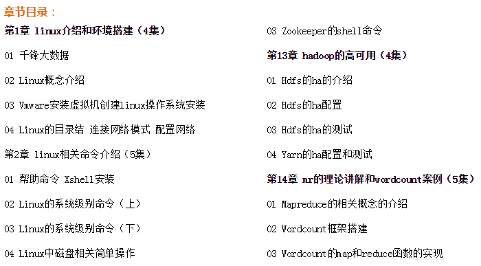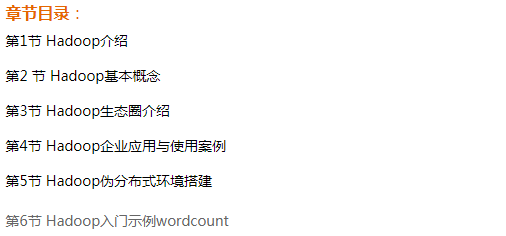Hadoop入门教程全面涵盖hadoop生态圈技术,内容涉及linux、hdfs、mapreduce、zookeeper、hive、sqoop等。
