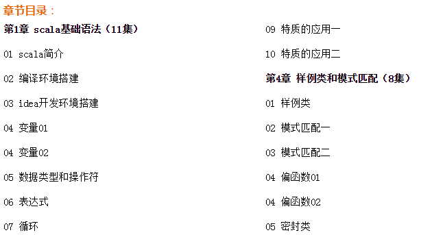 本套视频由浅入深对Scala内容进行全面讲解,主要针对Scala小白用户,如果有一定的编程语言基础,如了解Java语言,学习起来会更轻松。