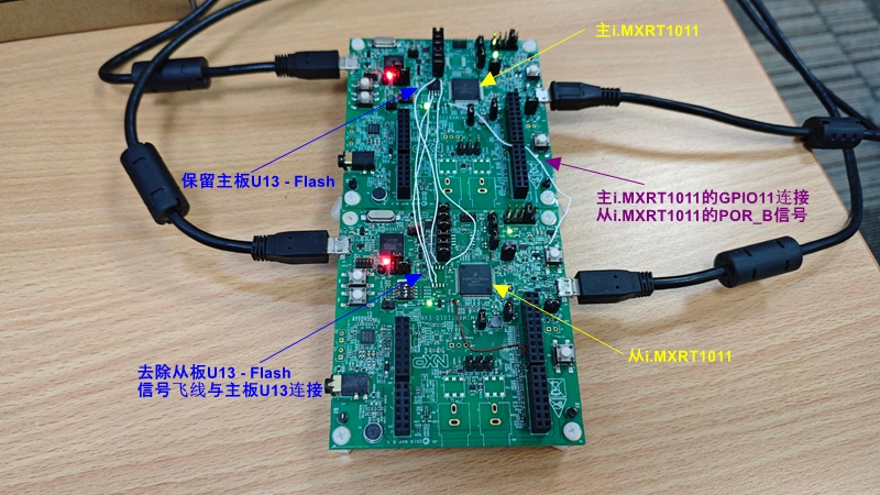 在 《多个i.MXRT共享一颗Flash启动的方法与实践(上)》 一文里痞子衡给大家从理论上介绍一种多 i.MXRT 共享 Flash 启动的方法,但是理论虽好,如果没有经过实践验证切实可行,不过是纸上谈兵,所以今天痞子衡就找了两个 i.MXRT 开发板来具体实操这种方法: