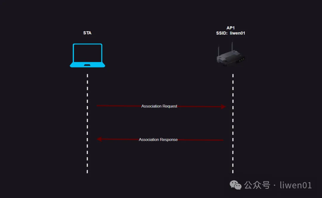 关联阶段包括 关联请求 (Association Request) 和 关联响应 (Association Response) 两部分: