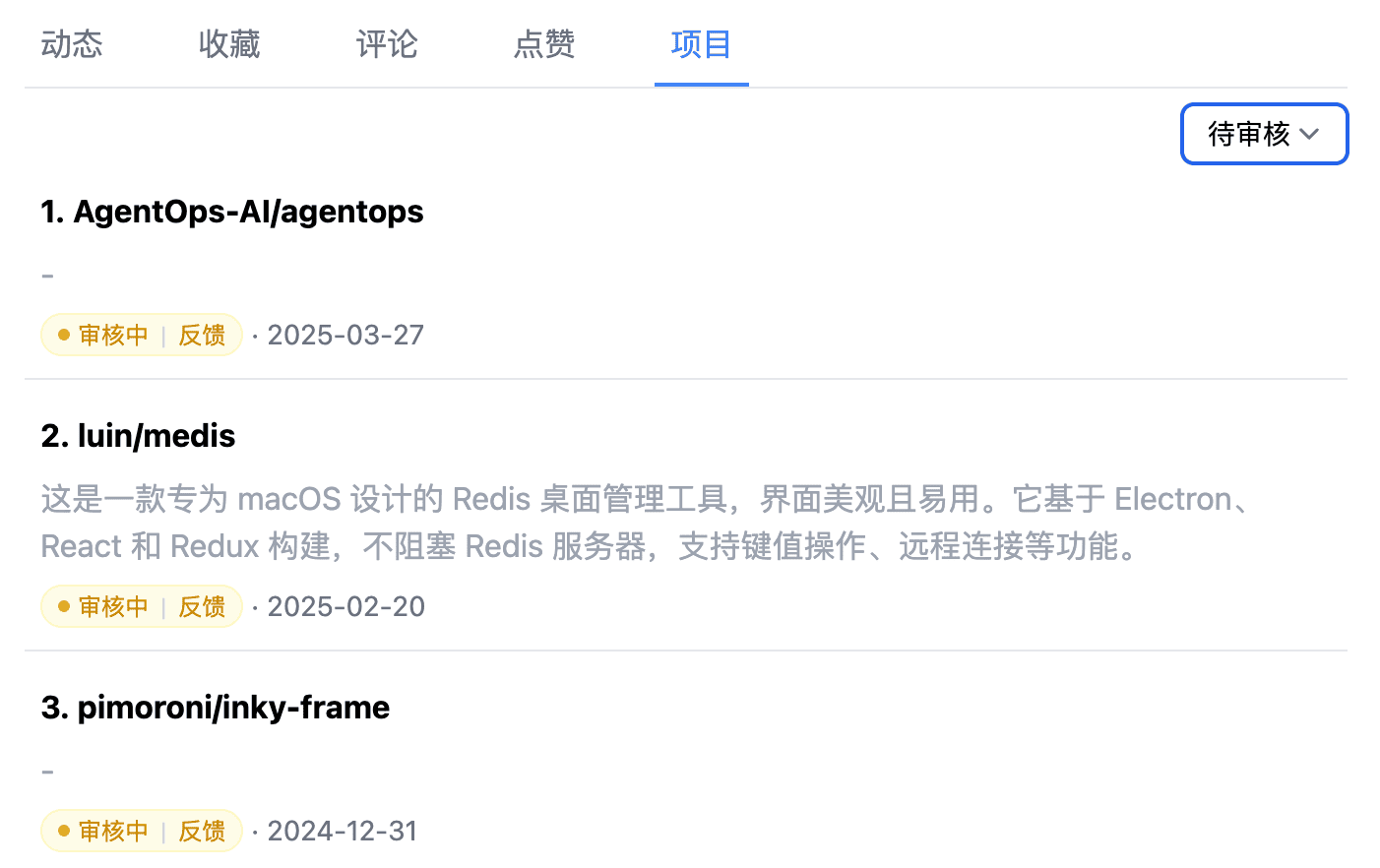 - 提交项目页面新增状态查看,以及「催审」功能