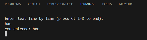 printf("Enter text line by line (press Ctrl+D to end):\n");