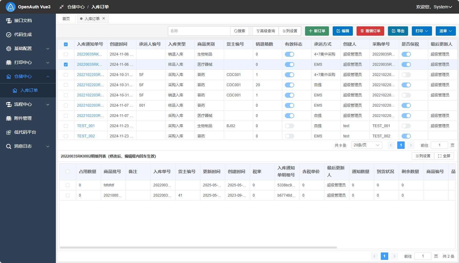 - 内置代码生成器,可快速生成带有头/明细结构的页面,请参考:代码生成