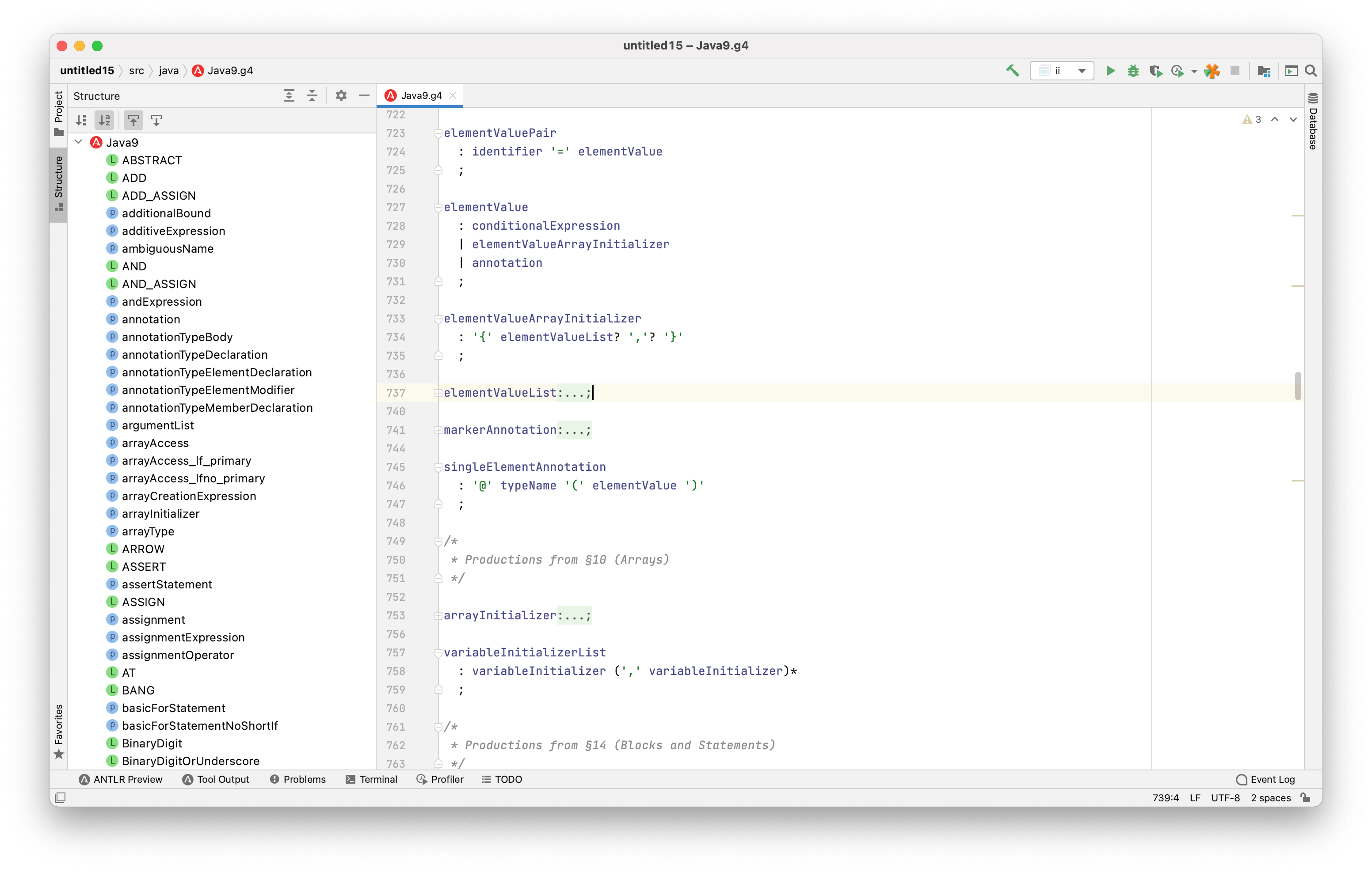 ANTLR (ANother Tool for Language Recognition) is a powerful parser generator for reading, processing, executing, or translating structured text or binary files.