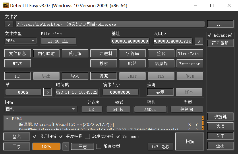 一道关于逆向的实战CTF题目分析 前言本题自带call型花指令,考验选手对花指令的理解程度。加密属于基础的异或和左右移位加密。主要考察选手的基础能力,动态调试和写脚本的能力。在这篇文章,详细记录了我的分析过程,相信你会有很大收获。1、查壳PE64位,没壳程序2、IDA分析去花指令使用IDA打开时,发现一片红,很正常的CTF考点:花指令sub_main当务之...