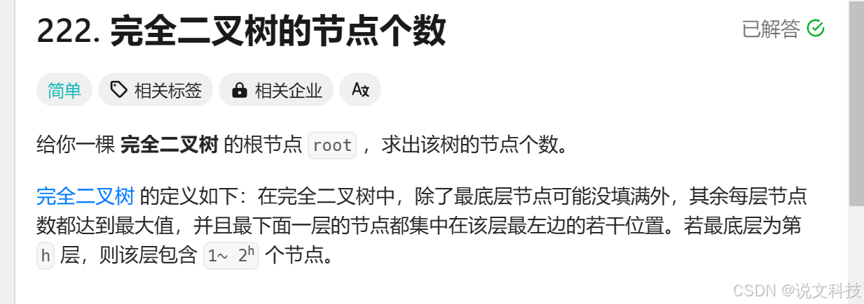 【LeetCode】222. 完全二叉树的个数 什么是计算机基础?如果本题能够用二分+二进制+二叉树的方式解出本题,那么我可以认为你的计算机基础就很好了。很久以来,我一直认为自己的计算机基础好,但是自刷题以来,跟网上这么多优秀的同学相比,我发现我实在是弱爆了。所以请认认真真地提升自己的专业能力吧!1. 题目这是一道好题!2. 分析这道题有很多种写法。先说简单的,用递归的...