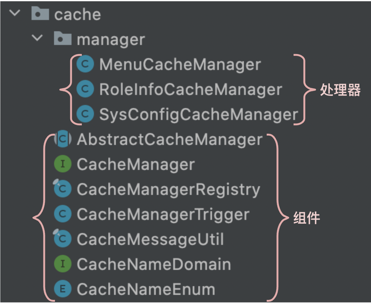 b. 可以使用一个枚举类将不同的缓存处理器分开,有利于管理,取名为CacheNameEnum;