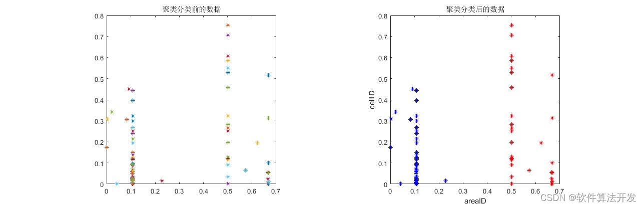 基于改进K-means的网络数据聚类算法matlab仿真 1.程序功能描述K-means属于聚类分析中一种基本的划分方法,常采用误差平方和准则函数作为聚类准则。主要优点是算法简单、快速而且能有效地处理大数据集。研究和分析了聚类算法中的经典K-均值聚类算法,总结出其优点和不足。重点分析了K-均值聚类算法对初始值的依赖性,并用实验验证了随机选取初始值对聚类结果的影响性。根据传统的K...