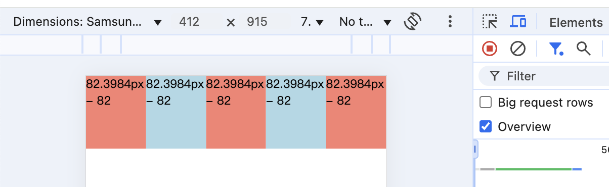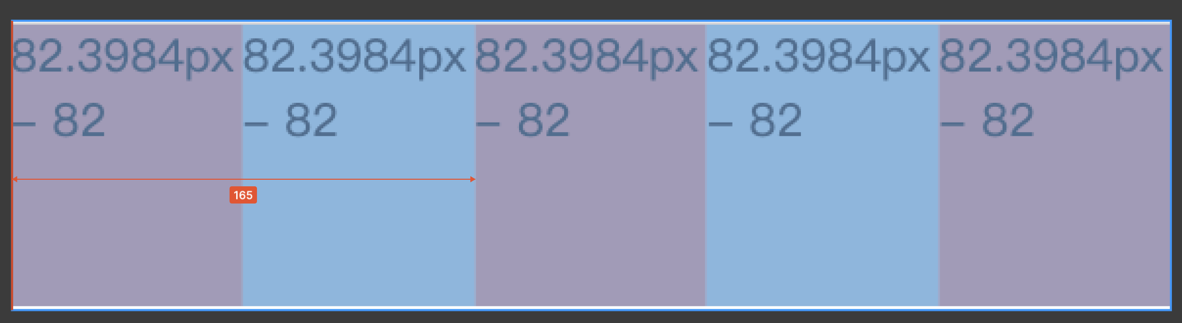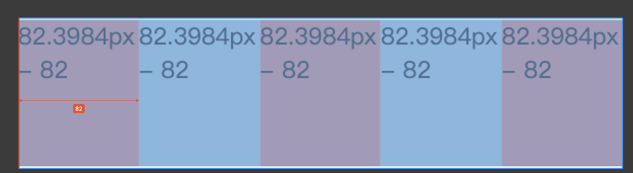 依此类推,我们可以测量出这五个矩形的真实渲染宽度分别为:82px、83px、82px、83px、82px