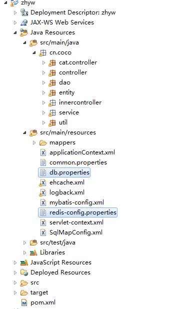 注意:classpath;db.properties这里的地址别写错了,不然会报java.io.FileNotFoundException,文件找不到错误,以我的项目为例(maven项目),截图项目目录层级,做参考