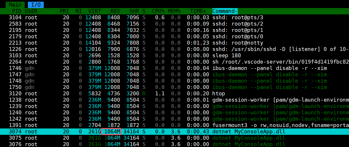 root 3074 2197 0 11:14 pts/1 00:00:00 dotnet MyConsoleApp.dll
