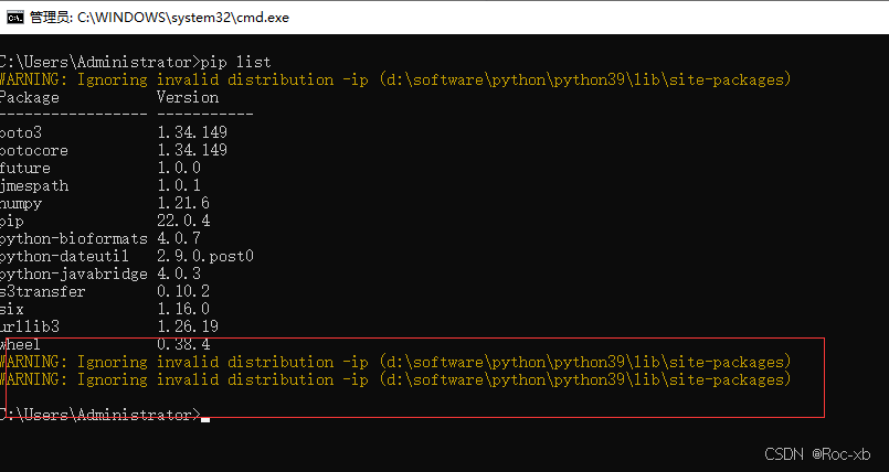 WARNING: Ignoring invalid distribution -ip警告信息如何去掉? 查看已安装依赖列表的时候,出现了很多警告信息,如何去掉呢?解决办法打开这个路径:d:\software\python\python39\lib\site-packages这种波浪线开头的,我们将它删除掉,就可以了。 ...