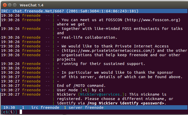 接下来介绍如何利用freenode服务器进行聊天。