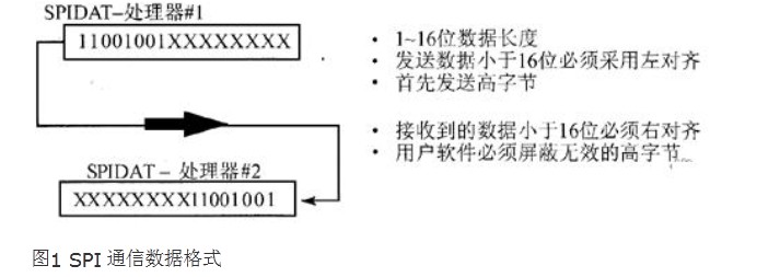 1位数据(SPI总线是按位传输的).对于小于16位的数据在发送之前必须左对齐,如果接收的数据小于16位则采用软件将无效的数据位屏蔽,如图1所示.对应的C代码: