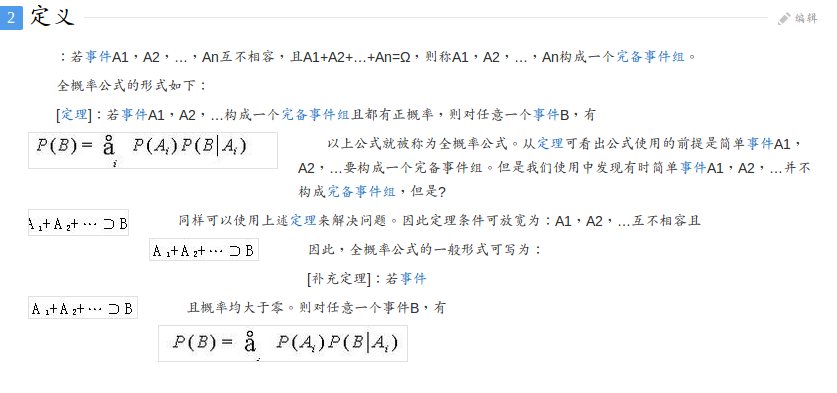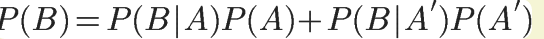 一句话,样本空间假设由两个事件组成,比方A和A'. 那么在这个样本空间中发生的时间B的概率的计算公式是: