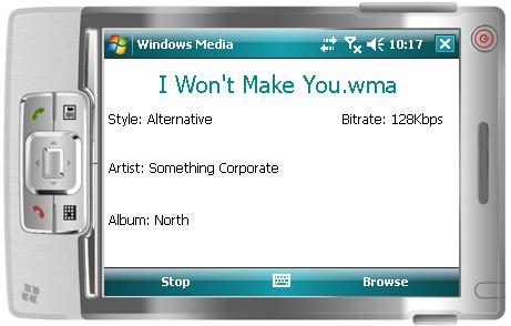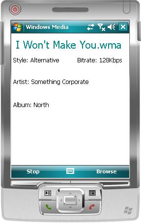 然后,启动进程,音乐开始播放了(此时也许你希望用户的焦点仍然你的FORM,那么你应将你的form放置在顶层),在WM5.0以上的系统中,提供了更多对WMP的支持,你可以通过某些属性访问到当前播放的曲目名,艺术家的名字,专辑名,比特率,已经播放的时间(精确到毫秒)甚至是音乐风格。下面列举了一些: