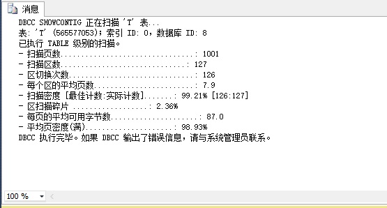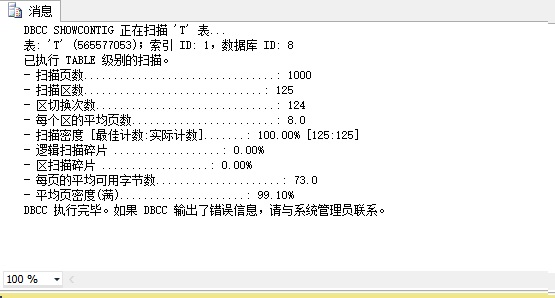 这样就只留下了X = 1 的行。它要占的空间是1000个页面、可是事实真的是主样吗?我们用dbcc showcontig('T')看一下