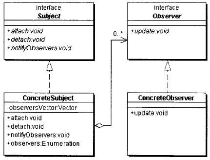 在java语言的java.util库里面,提供了一个Observable的类和一个Observer的接口,构成java语言对观察者模式的支持。(详情,请参考java.util.Observable 类源码)