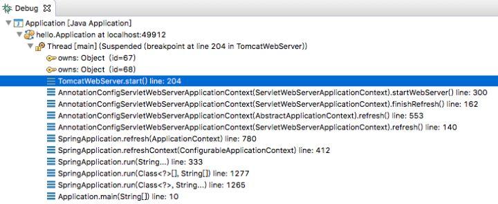 了解 SpringBoot 运行的最简单的方法就是看它的调用堆栈,下面这个启动调用堆栈还不是太深,我没什么可抱怨的。