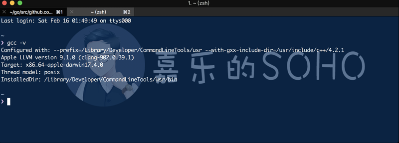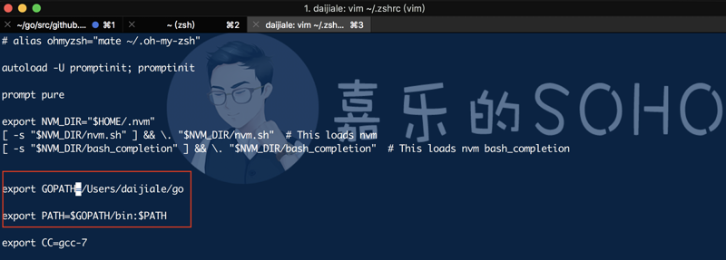 设置GOPATH,由于小编采用的是zsh,而非macOS自带的bash,所以环境变量设置在.zshrc中: