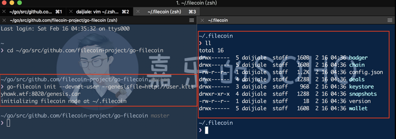 如下图所示,完成初始化操作后,即可正式启动并运行我们的Filecoin测试节点了: