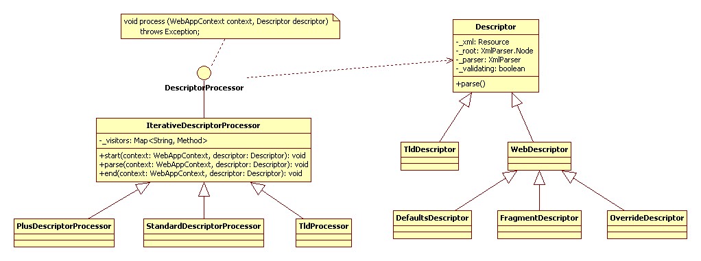 在Jetty中,所有XML文件的配置使用Descriptor来表达,而对这些Descriptor的处理使用DescriptorProcessor来实现。