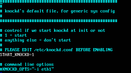 2.2 配置/etc/default/knockd,修改START_KNOCKD=1。