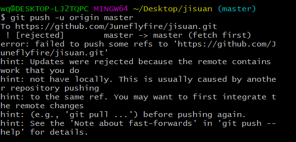 其次就是将项目在上传GitHub时花费了很长的时间,看视频看了一半就开始在GitHub上建立仓库,开始新建文件,殊不知这是一知半解。在求助他人的时候,知道了可以本地上传,就开始百度各种资料,依旧遇到很多的问题。比如本地git访问到gihub账号等等。好在都解决了,也让我在此学会了静心尽力去主动解决问题,而不是去恐惧它。